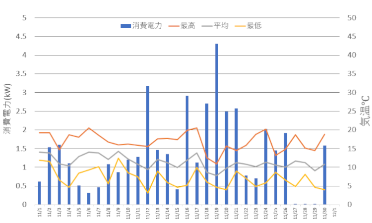 11月のエアコン稼働はすべて暖房です。さすがに。