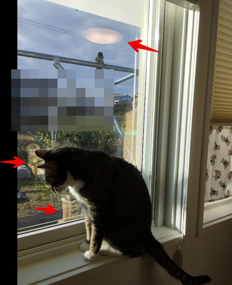 それで、屋外からどれくらい見えているかの目安は、室内からみて、反射分が見えているようです。
