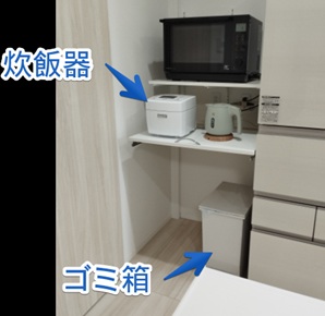 米びつはスリムタイプを選定して、家具を滑らせるテープを貼っています。